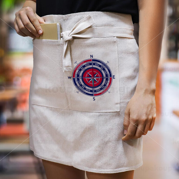 Ανεμολόγιο χάρτης πυξίδα ναυτικού, Ποδιά Μέσης με διπλή τσέπη Barista/Bartender, Beige