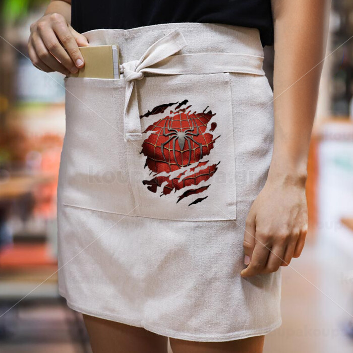 Spiderman cracked, Ποδιά Μέσης με διπλή τσέπη Barista/Bartender, Beige