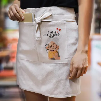 Γιαγιά σε αγαπώ πολύ!, Ποδιά Μέσης με διπλή τσέπη Barista/Bartender, Beige