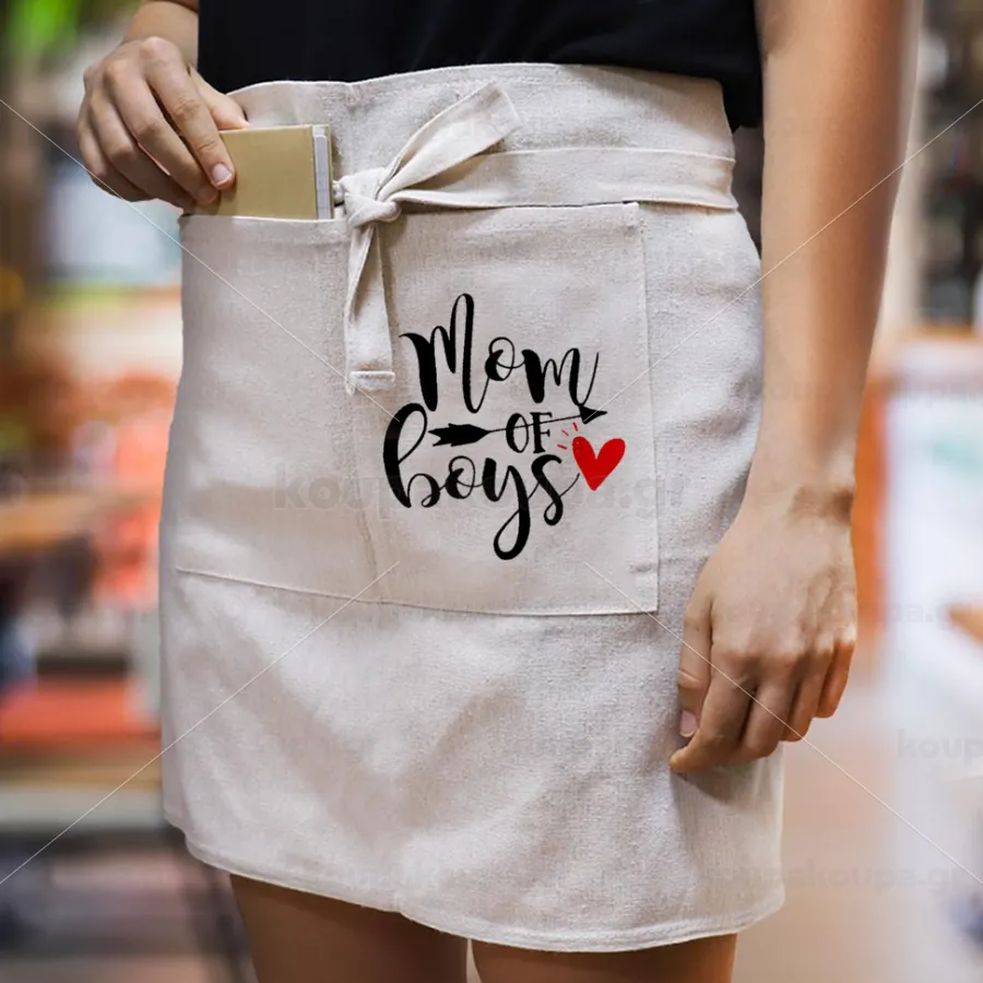 Mom of boys, Ποδιά Μέσης με διπλή τσέπη Barista/Bartender, Beige