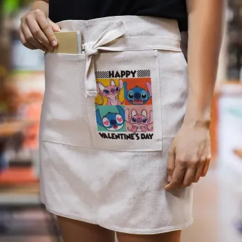 Lilo & Stitch Happy valentines day, Ποδιά Μέσης με διπλή τσέπη Barista/Bartender, Beige