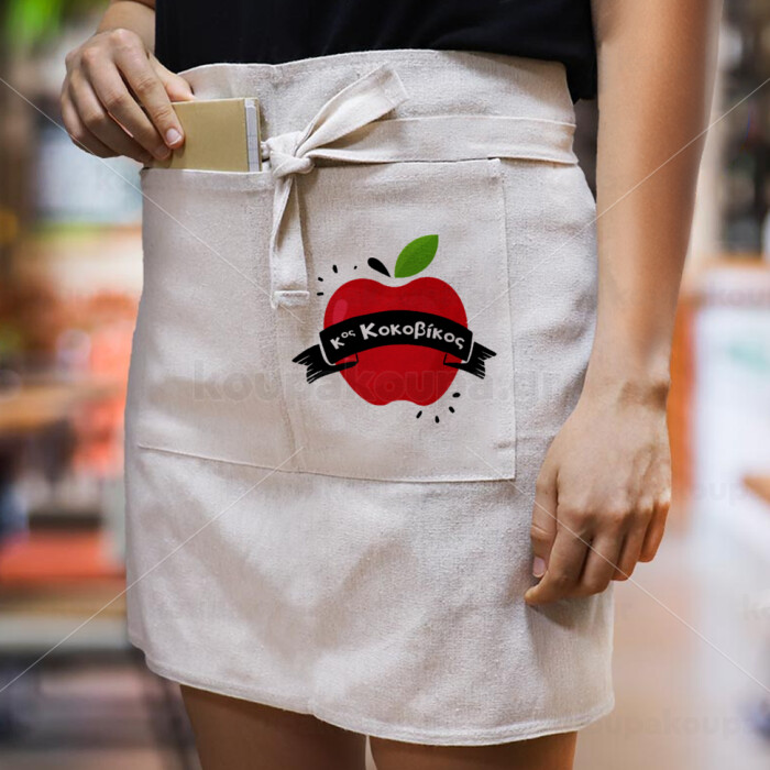 Αναμνηστικό Δώρο Δασκάλου Κόκκινο Μήλο, Ποδιά Μέσης με διπλή τσέπη Barista/Bartender, Beige