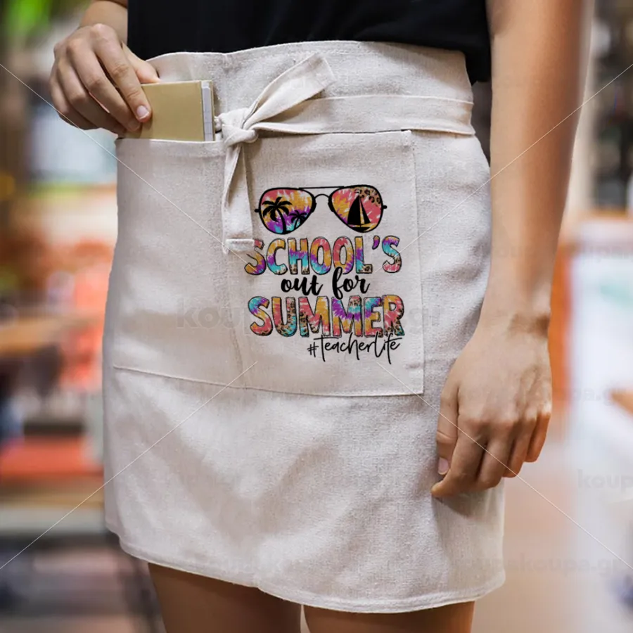 School's Out For Summer Teacher Life, Ποδιά Μέσης με διπλή τσέπη Barista/Bartender, Beige