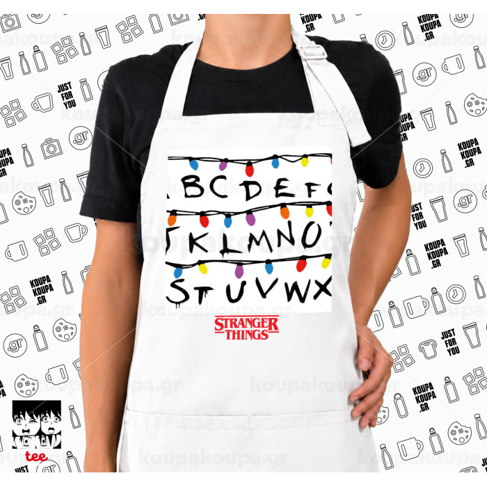 Stranger Things ABC, Ποδιά μακριά Σεφ ολόσωμη με τσέπες white (ΕΝΗΛΙΚΩΝ)