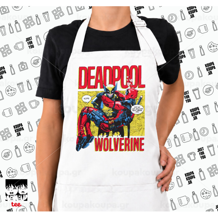 Superhero Deadpool Wolverine, Ποδιά μακριά Σεφ ολόσωμη με τσέπες white (ΕΝΗΛΙΚΩΝ)