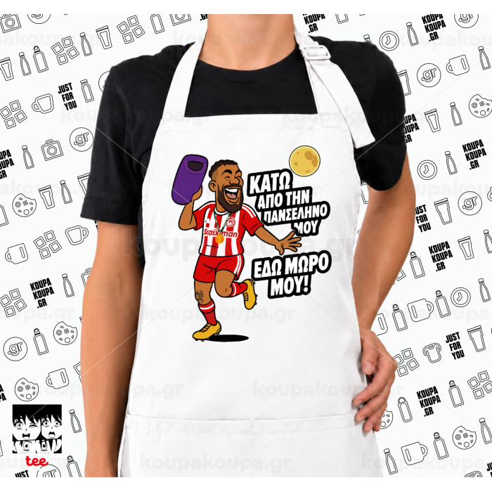 Ροντινέι, "ΚΑΤΩ ΑΠΟ ΤΗΝ ΠΑΝΣΕΛΗΝΟ ΜΟΥ!", Ποδιά μακριά Σεφ ολόσωμη με τσέπες white (ΕΝΗΛΙΚΩΝ)