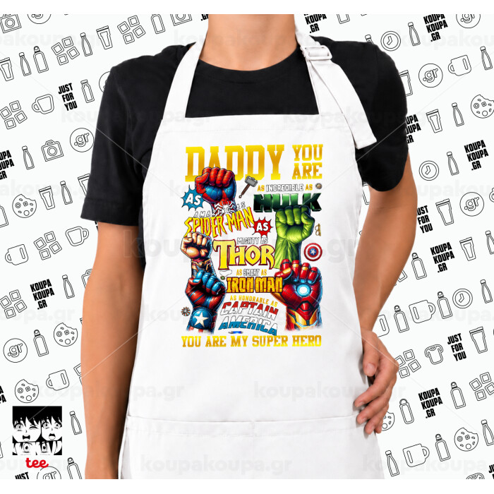 Daddy You Are my Hero, Ποδιά μακριά Σεφ ολόσωμη με τσέπες white (ΕΝΗΛΙΚΩΝ)