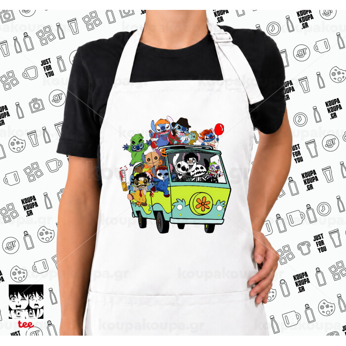 Stitch Halloween scooby car, Ποδιά μακριά Σεφ ολόσωμη με τσέπες white (ΕΝΗΛΙΚΩΝ)