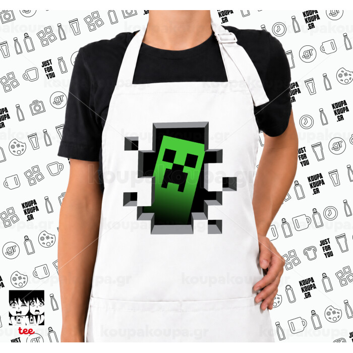 Minecraft creeper, Ποδιά μακριά Σεφ ολόσωμη με τσέπες white (ΕΝΗΛΙΚΩΝ)