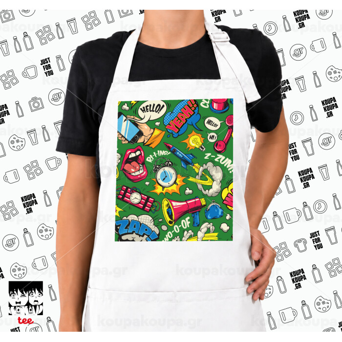 Pop art colorful seamless, Ποδιά μακριά Σεφ ολόσωμη με τσέπες white (ΕΝΗΛΙΚΩΝ)