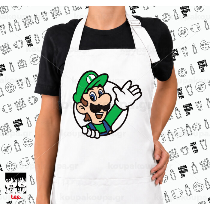 Super mario Luigi win, Ποδιά μακριά Σεφ ολόσωμη με τσέπες white (ΕΝΗΛΙΚΩΝ)
