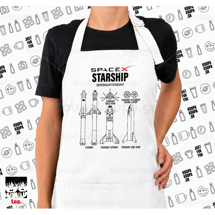 Space X, Ποδιά μακριά Σεφ ολόσωμη με τσέπες white (ΕΝΗΛΙΚΩΝ)
