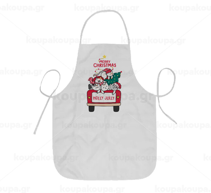 Merry Christmas cats in car, Ποδιά Σεφ ολόσωμη κοντή Παιδική (44x62cm)