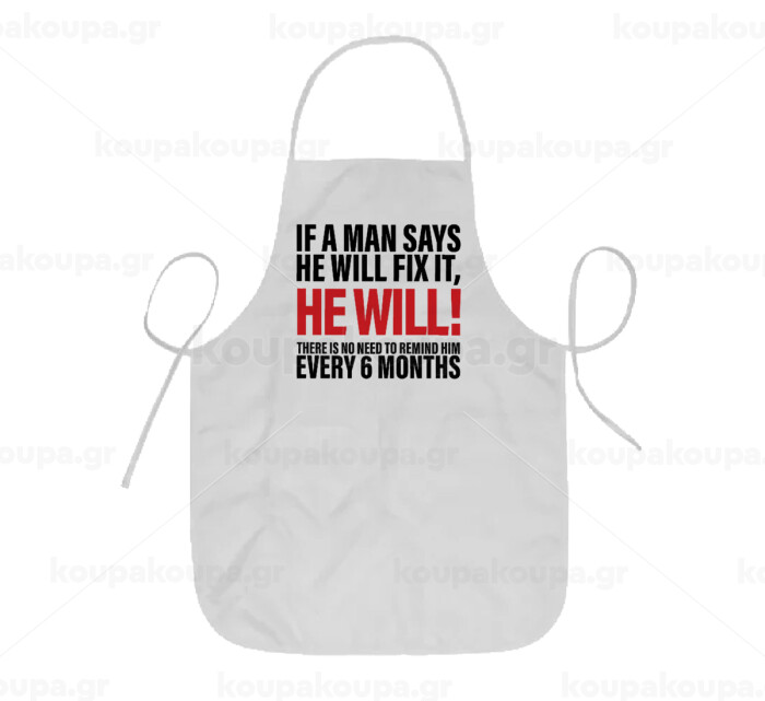 If a man says he will fix it He will There is no need to remind him every 6 months, Ποδιά Σεφ ολόσωμη κοντή Παιδική (44x62cm)