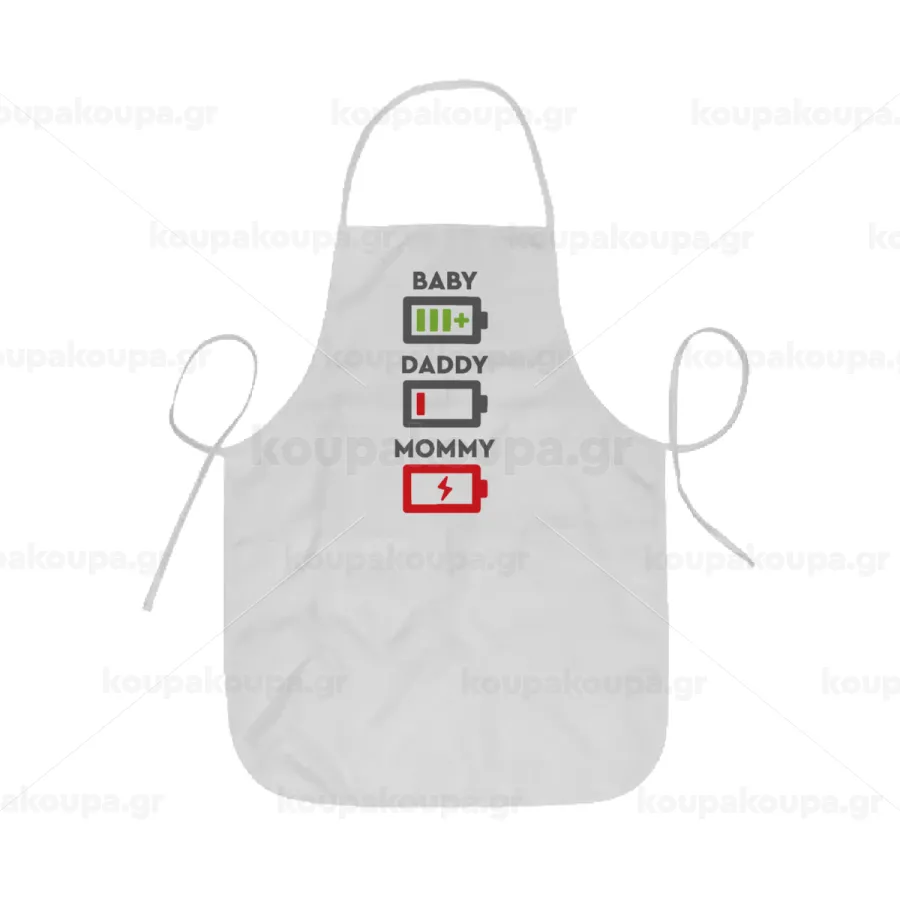 BABY, MOMMY, DADDY Low battery, Ποδιά Σεφ ολόσωμη κοντή Παιδική (44x62cm)