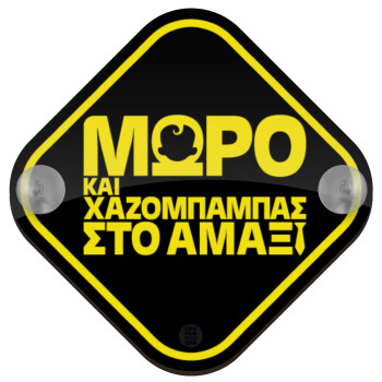 Μωρό & χαζομπαμπάς στο αμάξι, μαύρο, Σήμανση αυτοκινήτου Baby On Board ξύλινο με βεντουζάκια (16x16cm)