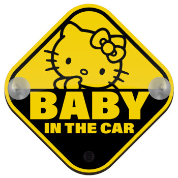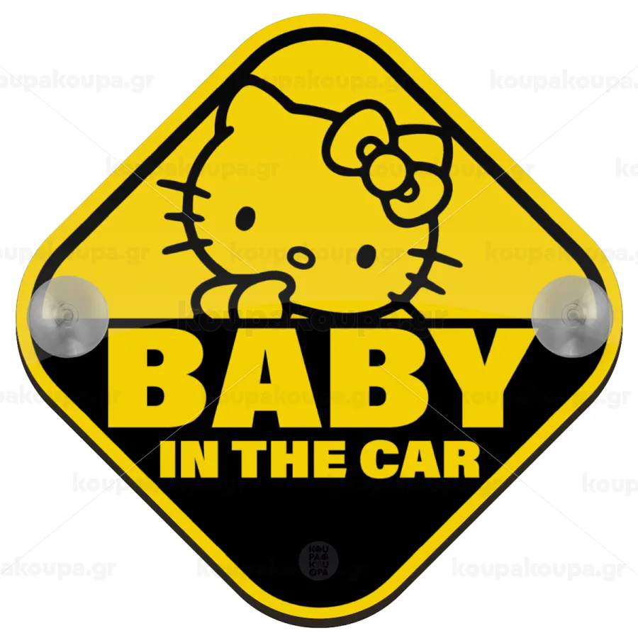 Baby in the car kitty, Σήμανση αυτοκινήτου Baby On Board ξύλινο με βεντουζάκια (16x16cm)