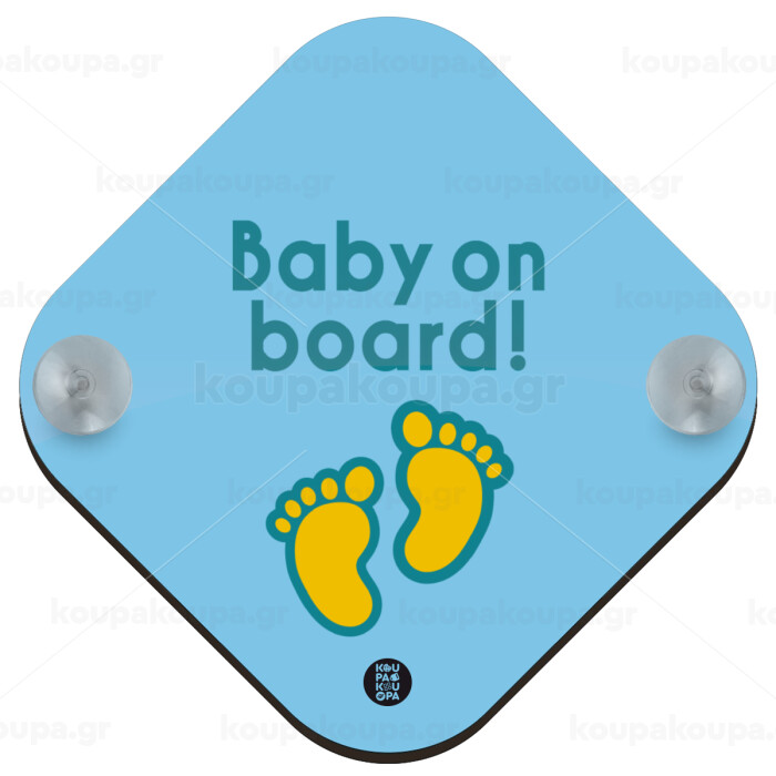 Baby on Board πατουσα Αγόρι, Σήμανση αυτοκινήτου Baby On Board ξύλινο με βεντουζάκια (16x16cm)