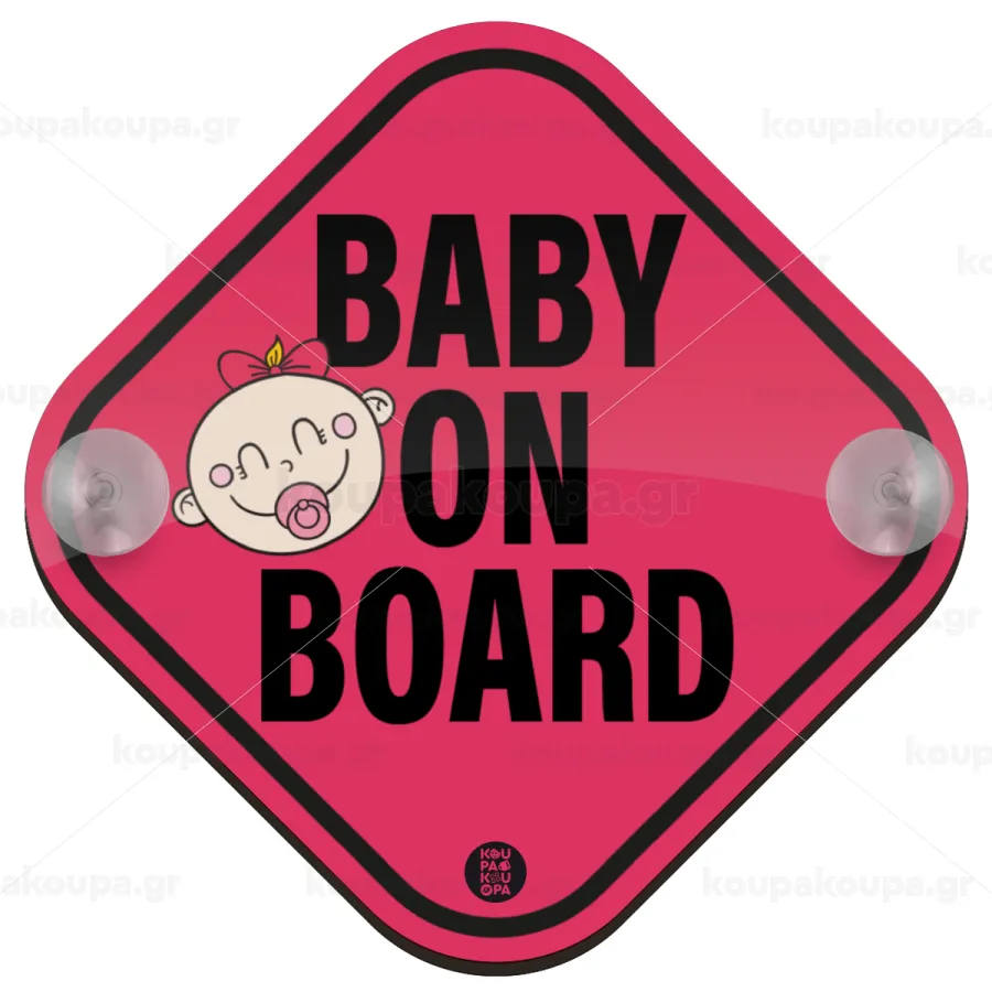 Baby on board GIRL, Σήμανση αυτοκινήτου Baby On Board ξύλινο με βεντουζάκια (16x16cm)
