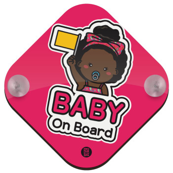 Basic Africa Girl, Σήμανση αυτοκινήτου Baby On Board ξύλινο με βεντουζάκια (16x16cm)