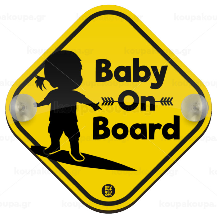 Board Girl, Σήμανση αυτοκινήτου Baby On Board ξύλινο με βεντουζάκια (16x16cm)