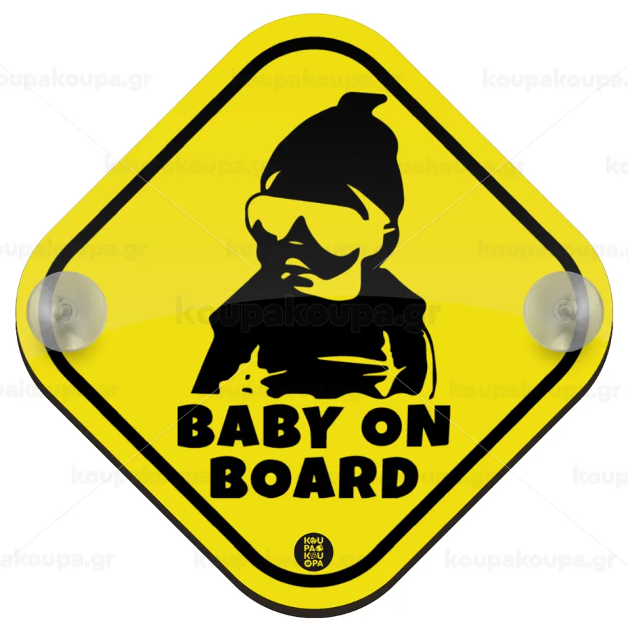 GANG Baby on board, Σήμανση αυτοκινήτου Baby On Board ξύλινο με βεντουζάκια (16x16cm)