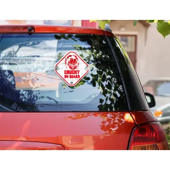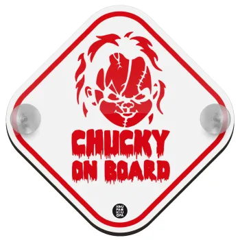 Halloween baby on board, Chucky, Σήμανση αυτοκινήτου Baby On Board ξύλινο με βεντουζάκια (16x16cm)
