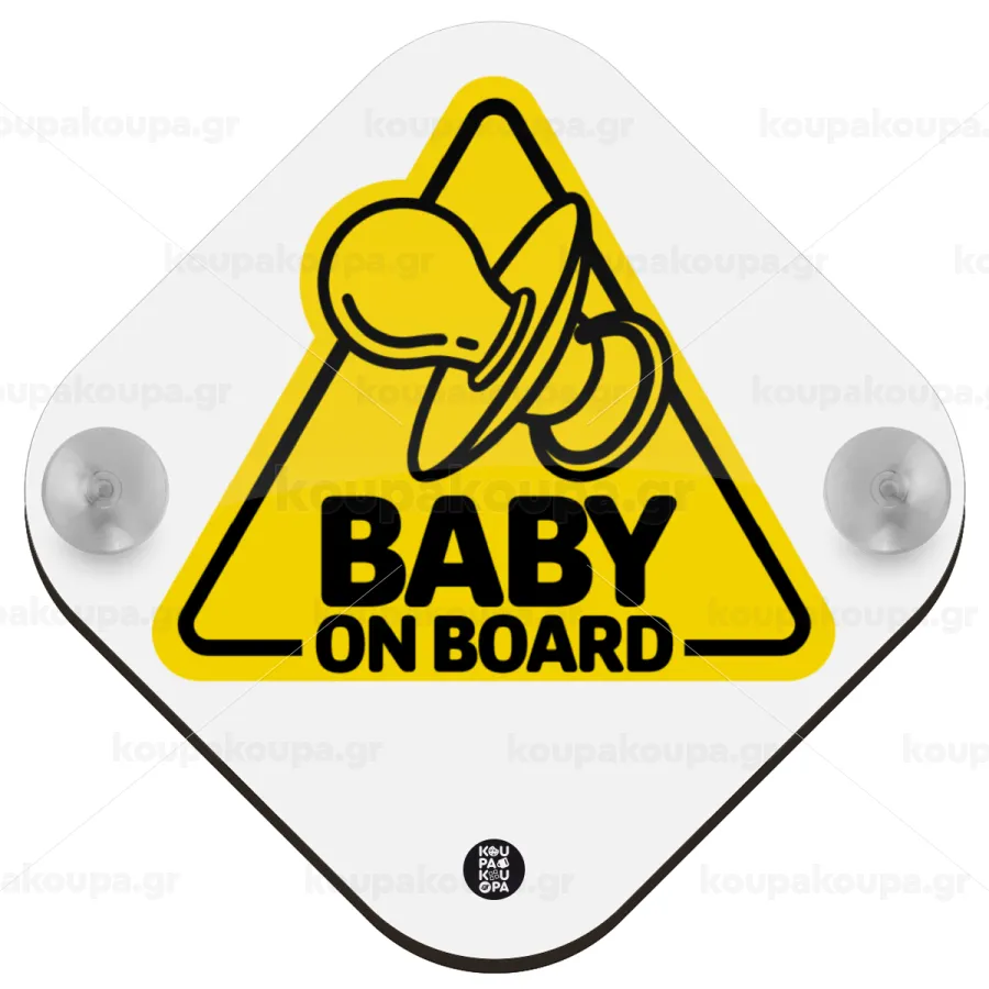 Πιπίλας Baby on board, Σήμανση αυτοκινήτου Baby On Board ξύλινο με βεντουζάκια (16x16cm)