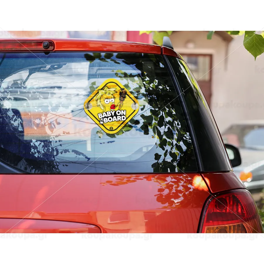 The Simpsons, Σήμανση αυτοκινήτου Baby On Board ξύλινο με βεντουζάκια (16x16cm)