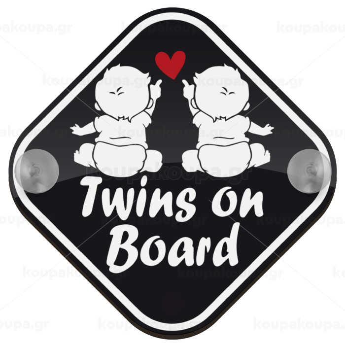 Twins on board καρδούλα, Σήμανση αυτοκινήτου Baby On Board ξύλινο με βεντουζάκια (16x16cm)