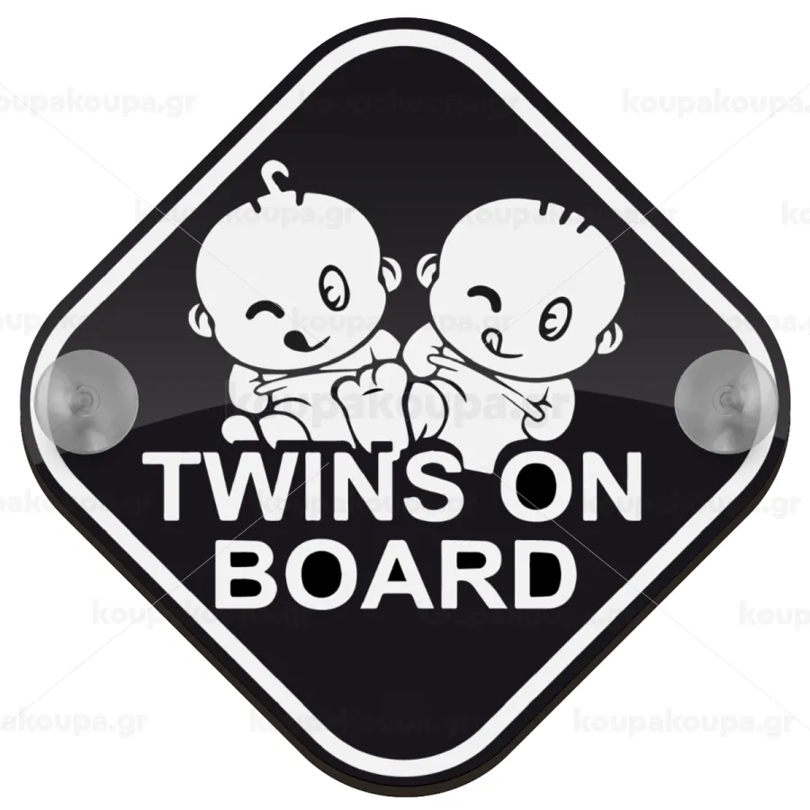 Twins on board, Σήμανση αυτοκινήτου Baby On Board ξύλινο με βεντουζάκια (16x16cm)