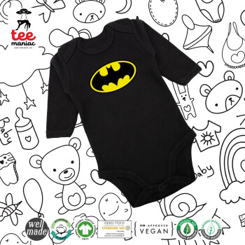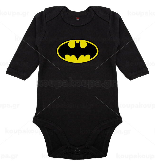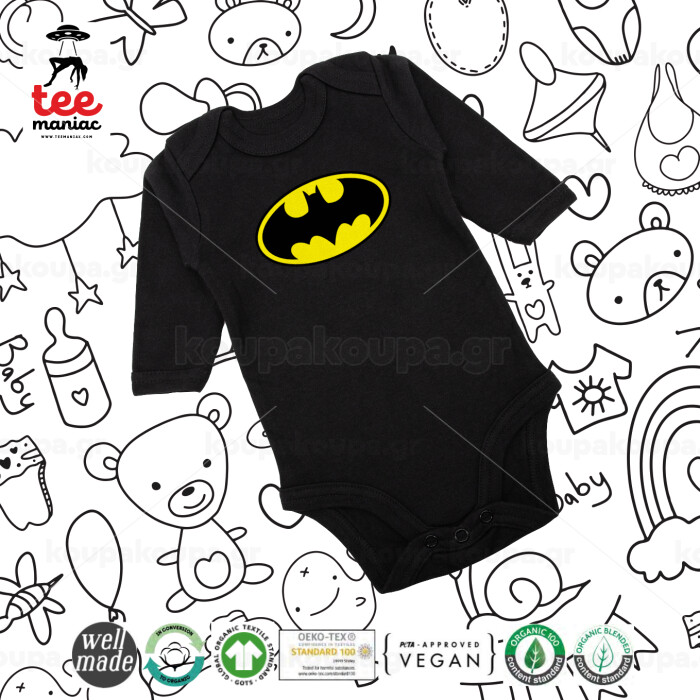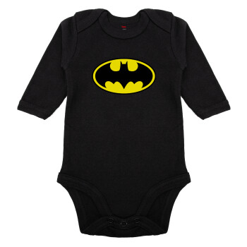 Batman, Μακρυμάνικο βρεφικό φορμάκι, 0-18 μηνών, ΜΑΥΡΟ, 100% Organic Cotton