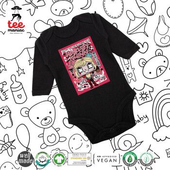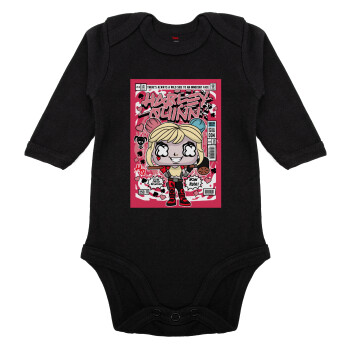 Harley Quinn (Χάρλεϊ Κουίν), Μακρυμάνικο βρεφικό φορμάκι, 0-18 μηνών, ΜΑΥΡΟ, 100% Organic Cotton