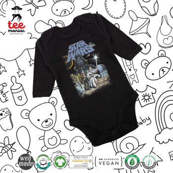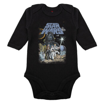Star Wars, Μακρυμάνικο βρεφικό φορμάκι, 0-18 μηνών, ΜΑΥΡΟ, 100% Organic Cotton