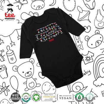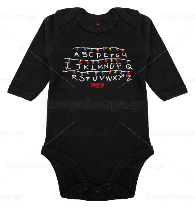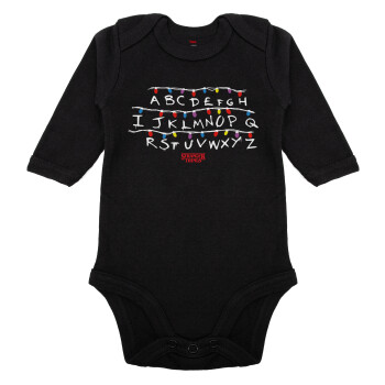 Stranger Things ABC, Μακρυμάνικο βρεφικό φορμάκι, 0-18 μηνών, ΜΑΥΡΟ, 100% Organic Cotton