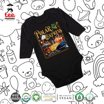 The Polar Express, Μακρυμάνικο βρεφικό φορμάκι, 0-18 μηνών, ΜΑΥΡΟ, 100% Organic Cotton