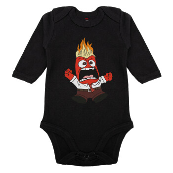 Inside Out θυμός, Μακρυμάνικο βρεφικό φορμάκι, 0-18 μηνών, ΜΑΥΡΟ, 100% Organic Cotton