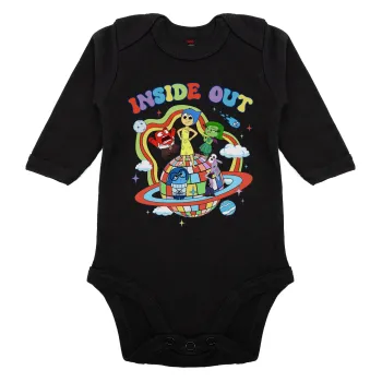 Inside Out, Μακρυμάνικο βρεφικό φορμάκι, 0-18 μηνών, ΜΑΥΡΟ, 100% Organic Cotton