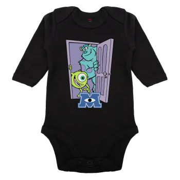 Monster inc, Μακρυμάνικο βρεφικό φορμάκι, 0-18 μηνών, ΜΑΥΡΟ, 100% Organic Cotton