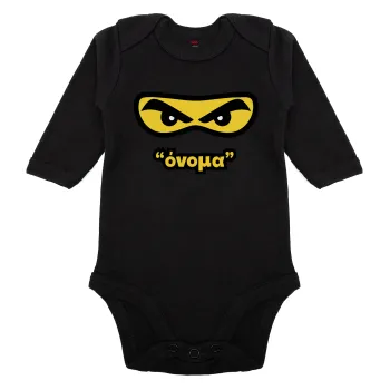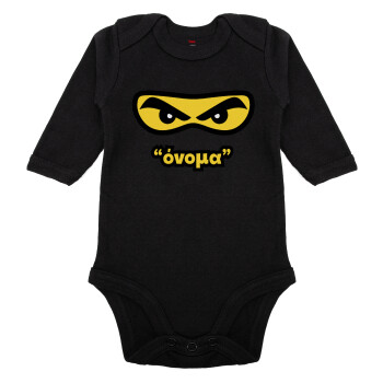 Ninja Eyes με όνομα, Μακρυμάνικο βρεφικό φορμάκι, 0-18 μηνών, ΜΑΥΡΟ, 100% Organic Cotton