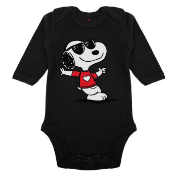 Snoopy καρδούλα, Μακρυμάνικο βρεφικό φορμάκι, 0-18 μηνών, ΜΑΥΡΟ, 100% Organic Cotton