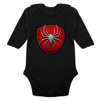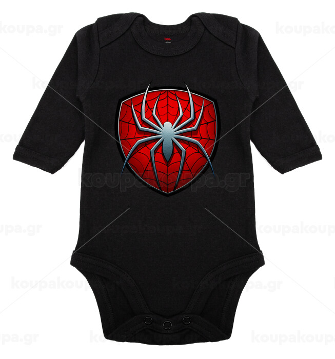 Spider-man, Μακρυμάνικο βρεφικό φορμάκι, 0-18 μηνών, ΜΑΥΡΟ, 100% Organic Cotton