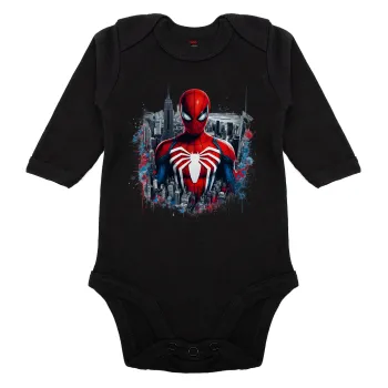 Spiderman City, Μακρυμάνικο βρεφικό φορμάκι, 0-18 μηνών, ΜΑΥΡΟ, 100% Organic Cotton