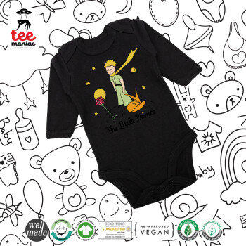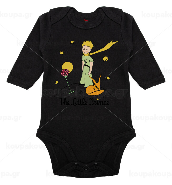 Ο μικρός πρίγκιπας classic, Μακρυμάνικο βρεφικό φορμάκι, 0-18 μηνών, ΜΑΥΡΟ, 100% Organic Cotton