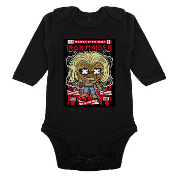Iron maiden (eddie), Μακρυμάνικο βρεφικό φορμάκι, 0-18 μηνών, ΜΑΥΡΟ, 100% Organic Cotton