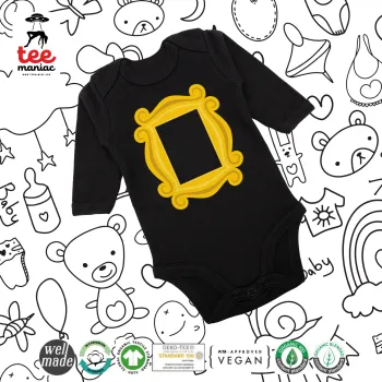 Friends frame, Μακρυμάνικο βρεφικό φορμάκι, 0-18 μηνών, ΜΑΥΡΟ, 100% Organic Cotton