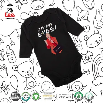 Friends,. oh my eyes Phoebe, Μακρυμάνικο βρεφικό φορμάκι, 0-18 μηνών, ΜΑΥΡΟ, 100% Organic Cotton