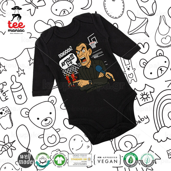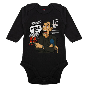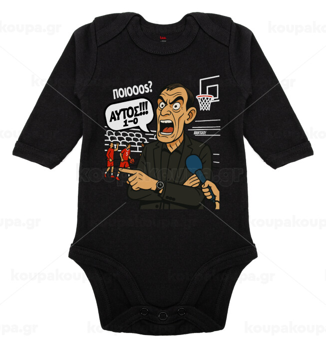 Μπαρτζό, Ποιος? Αυτός!!! 1-0, Μακρυμάνικο βρεφικό φορμάκι, 0-18 μηνών, ΜΑΥΡΟ, 100% Organic Cotton