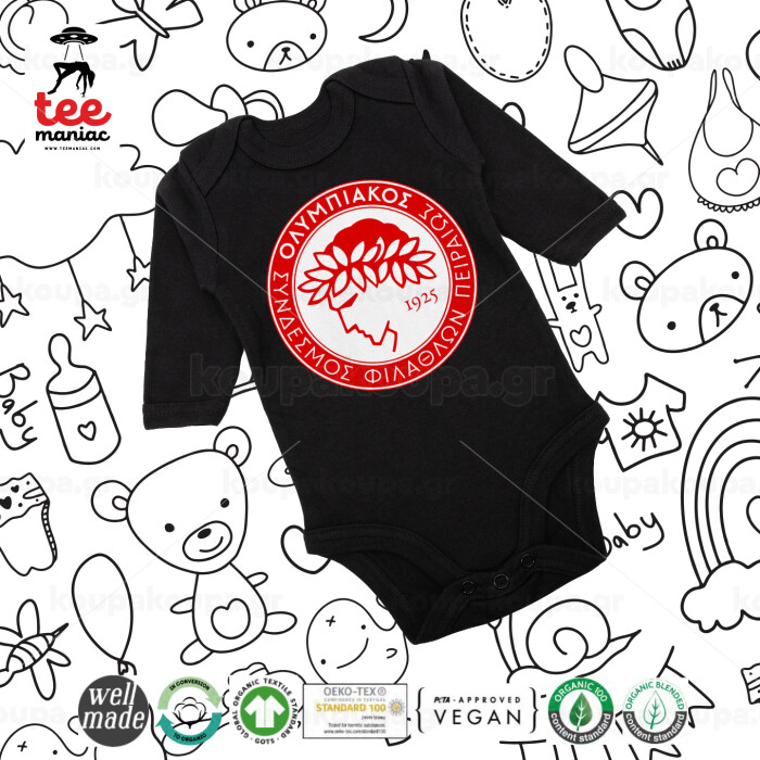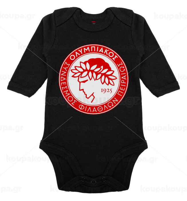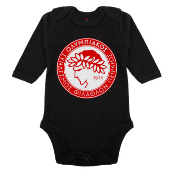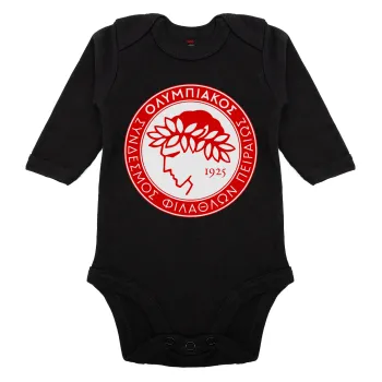 Ολυμπιακός, Μακρυμάνικο βρεφικό φορμάκι, 0-18 μηνών, ΜΑΥΡΟ, 100% Organic Cotton