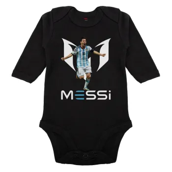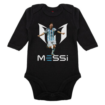 Λιονέλ Μέσι, Leo Messi, Μακρυμάνικο βρεφικό φορμάκι, 0-18 μηνών, ΜΑΥΡΟ, 100% Organic Cotton